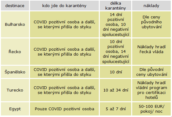 Karanténa v jednotlivých destinacích